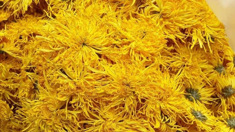 烘好后的皇菊,不能放置太長時間,以免回潮,有步驟的進行包裝、儲藏。
